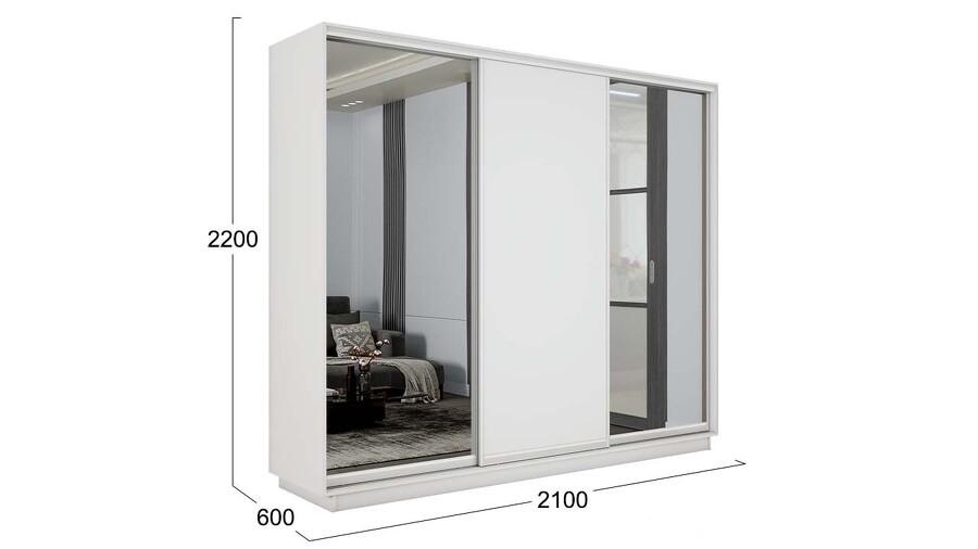 Шкаф-купе 3-х дверный «Румер-2» - СШК 3.210.70-13.11.13 Белый снег, Зеркало