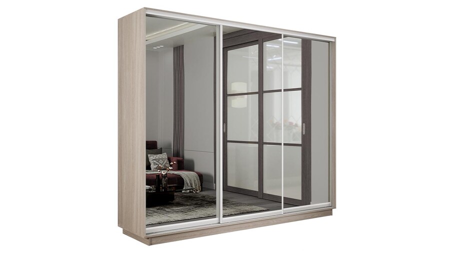 Шкаф-купе 3-х дверный «Румер-2» - СШК 3.210.70-13.13.13 Ясень шимо светлый, Зеркало