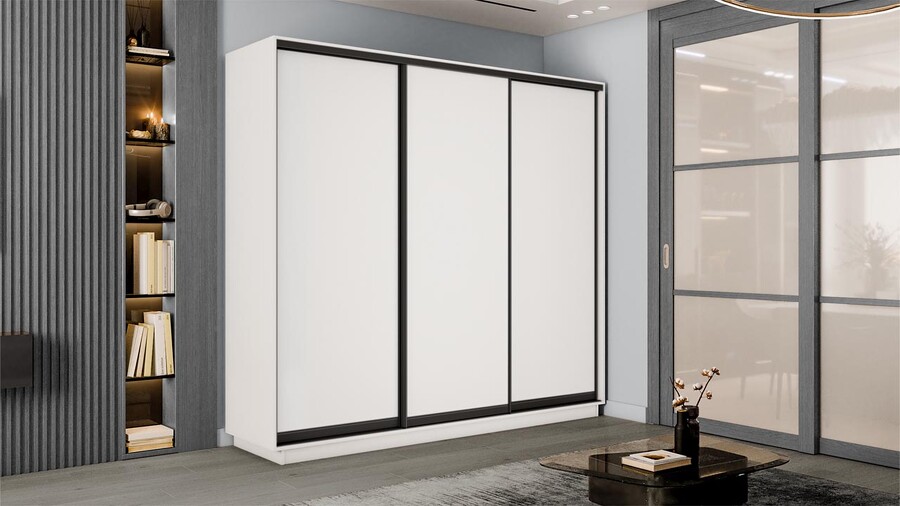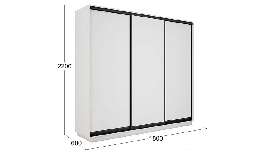 Шкаф-купе 3-х дверный «Румер-2» - СШК 3.180.60-11.11.11(Н) Белый снег, Черный профиль