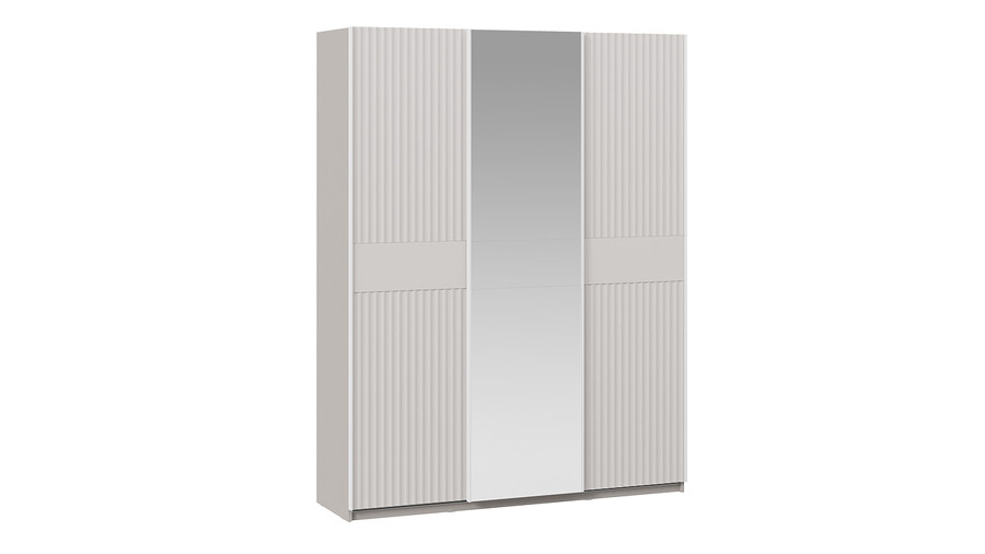 Шкаф-купе с 2 глухими и 1 зеркальной дверями «Оскар Тиффани» Ручка белая, Кашемир, Кашемир матовый