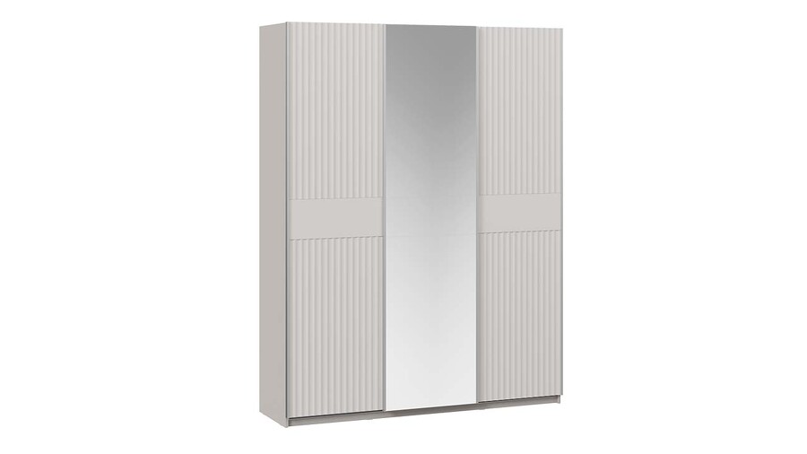Шкаф-купе с 2 глухими и 1 зеркальной дверями «Оскар Тиффани» Ручка серебро, Кашемир, Кашемир матовый