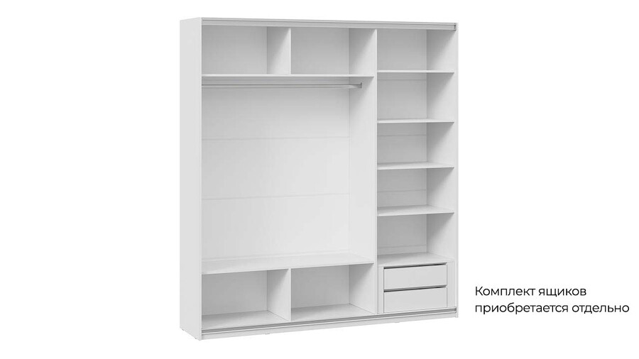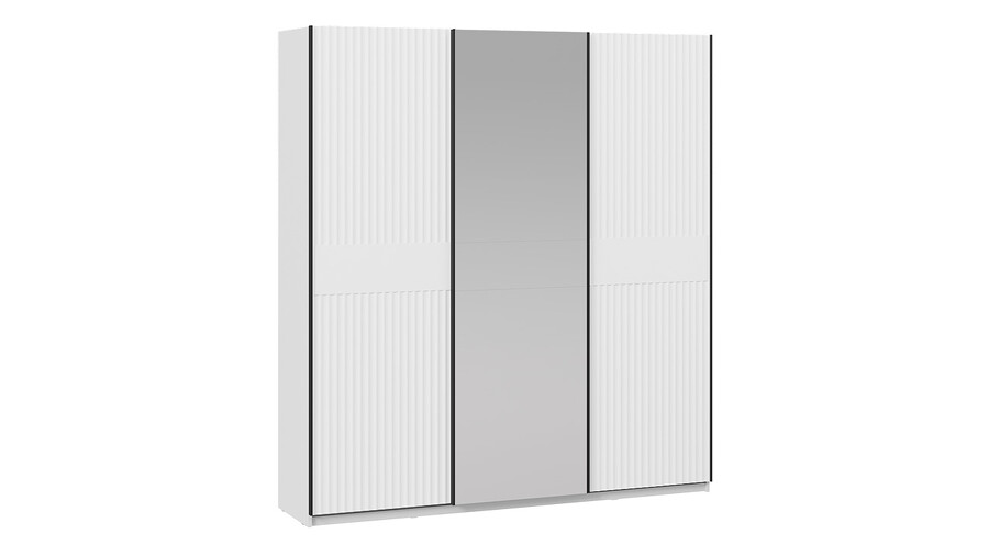 Шкаф-купе с 2 глухими и 1 зеркальной дверями «Оскар Тиффани» Ручка черная, Белый снег, Белый софт