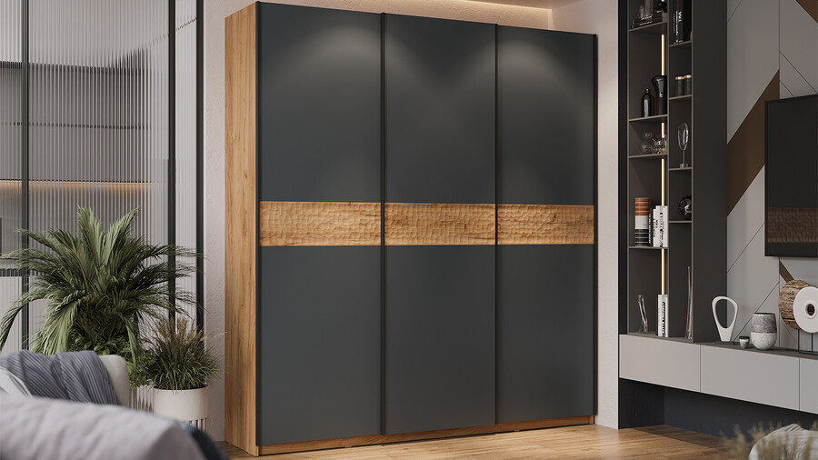 Шкаф-купе с 3 глухими дверями «Оскар Скания» Ручка черная, Дуб Крафт золотой, Серый графит, Дуб тортугга