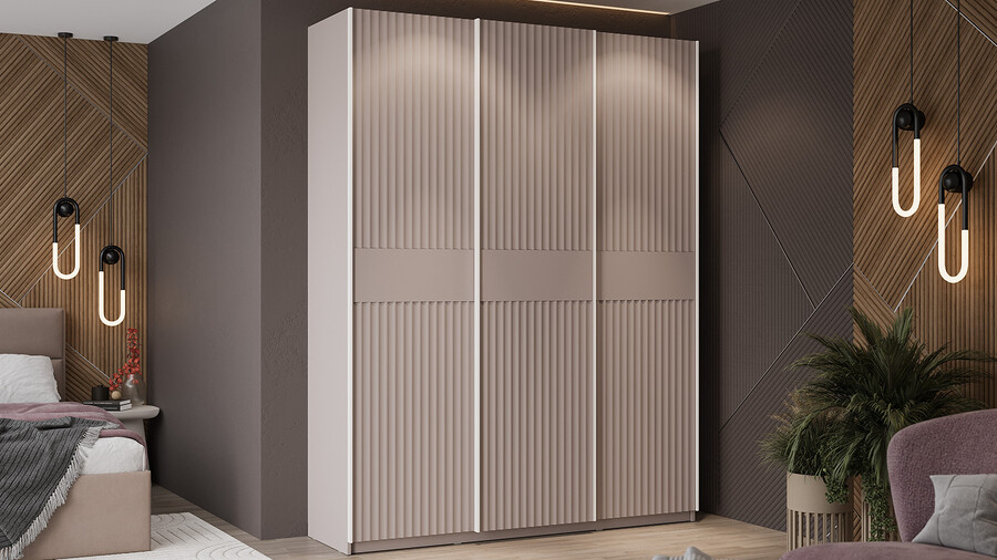 Шкаф-купе с 3 глухими дверями «Оскар Тиффани» Ручка белая, Кашемир, Кашемир матовый