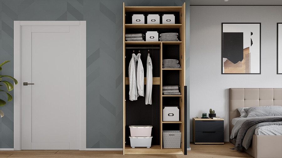 Шкаф для одежды «Джоли» - 405.007.000 Дуб Крафт золотой, Графит матовый