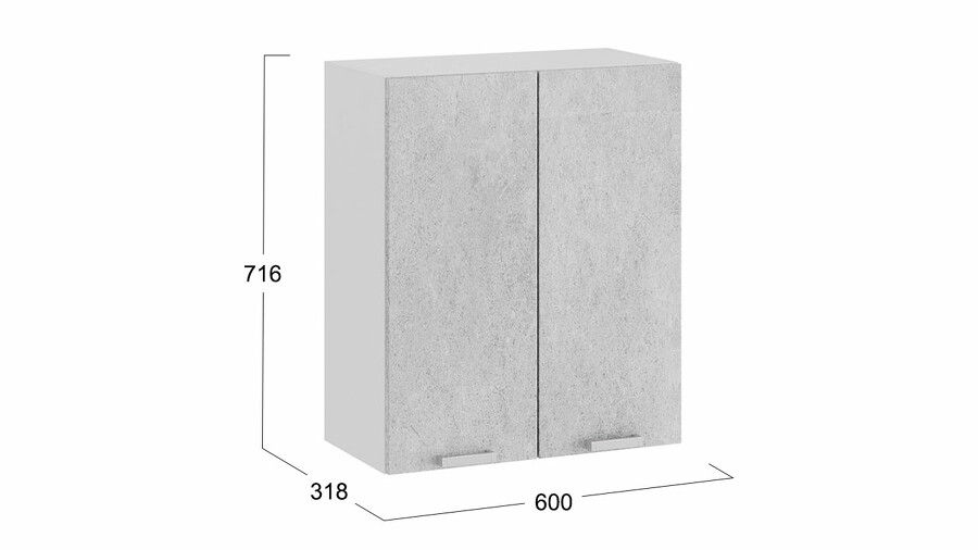 Шкаф навесной c двумя дверями «Гранита» - 1В6 Белый, Бетон снежный