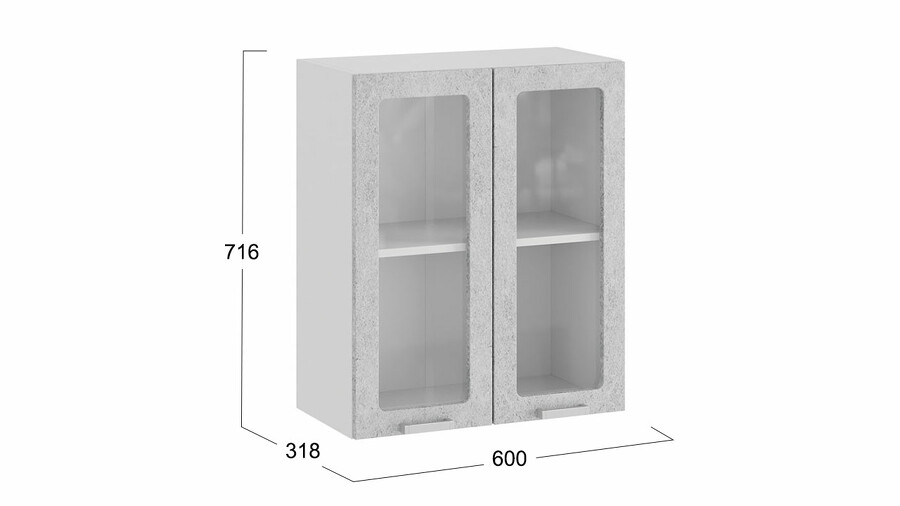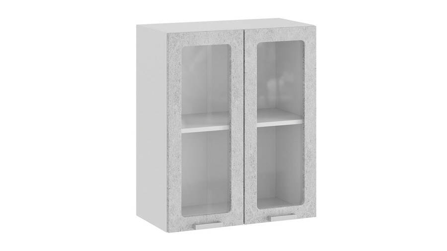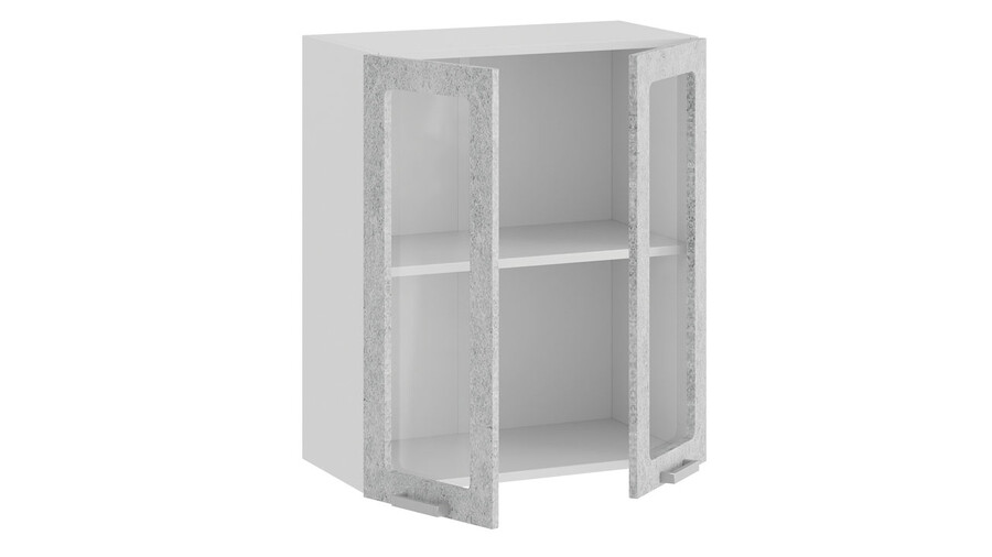 Шкаф навесной c двумя дверями со стеклом «Гранита» - 1В6С Белый, Бетон снежный