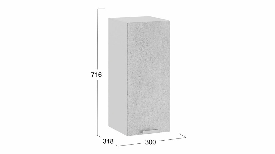 Шкаф навесной c одной дверью «Гранита» - 1В3 Белый, Бетон снежный