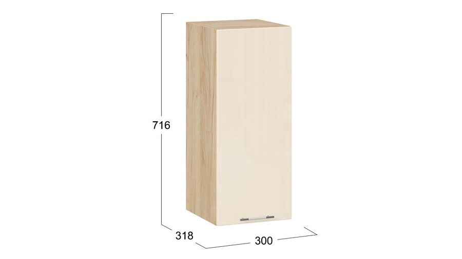 Шкаф навесной c одной дверью «Весна» - 1В3 Дуб Крафт золотой, Ваниль глянец