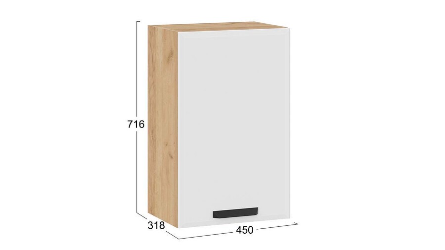 Шкаф кухонный навесной с одной дверью «Тиана» - 1В45 Дуб Крафт золотой, Белый супермат