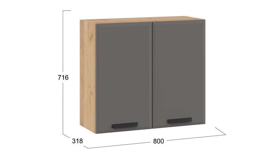 Шкаф навесной c двумя дверями «Тиана» - 1В8 Дуб Крафт золотой, Асфальт супермат