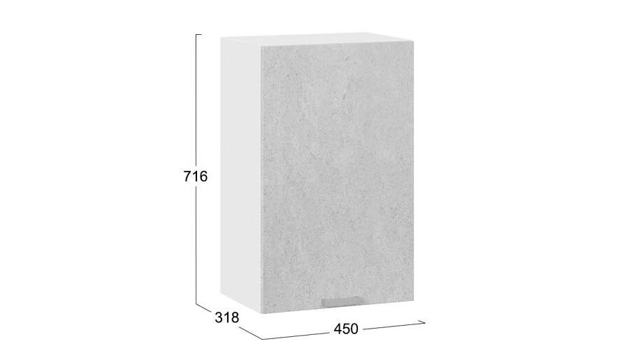 Шкаф навесной c одной дверью «Гранита» - 1В45 Белый, Бетон снежный