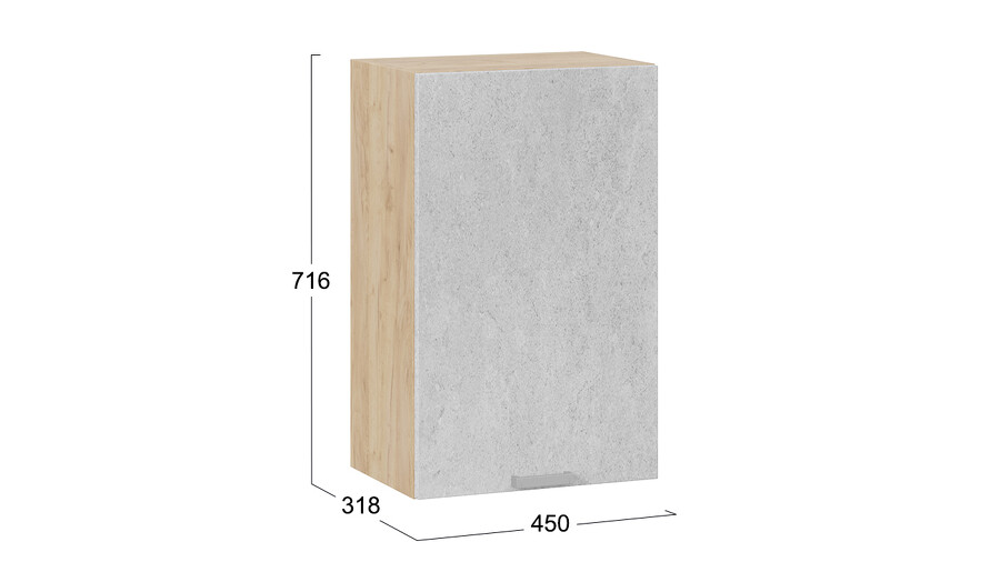 Шкаф навесной c одной дверью «Гранита» - 1В45 Дуб Крафт золотой, Бетон снежный
