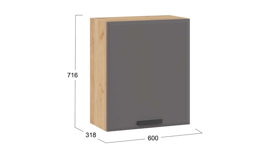 Шкаф навесной c одной дверью «Тиана» - 1В6 Дуб Крафт золотой, Асфальт супермат