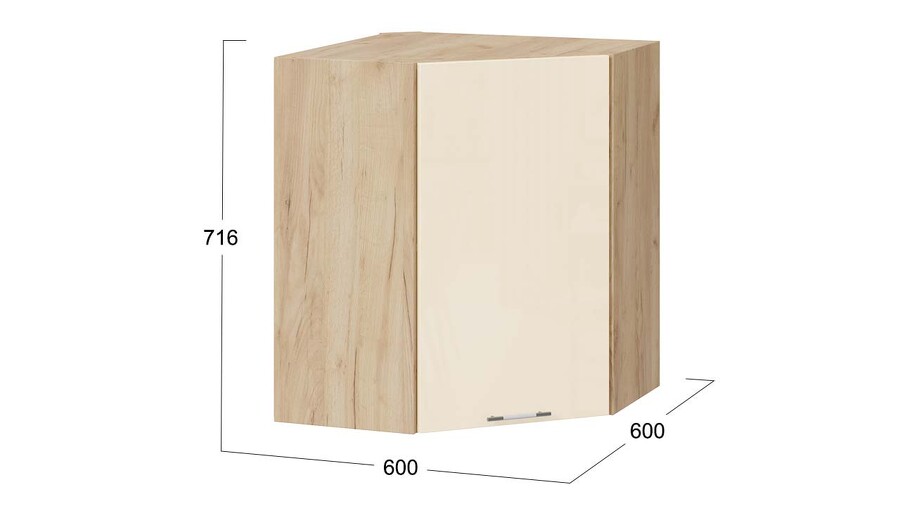 Шкаф навесной угловой «Весна» - 1В6У Дуб Крафт золотой, Ваниль глянец
