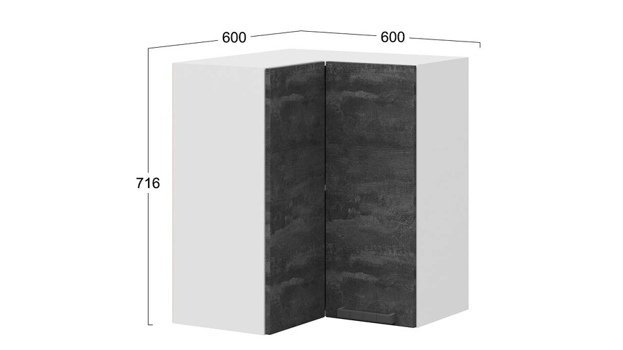 Шкаф навесной угловой прямой «Детройт» - 1В6УП Белый, Угольный Камень