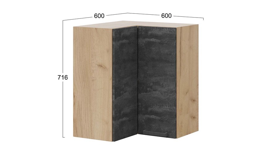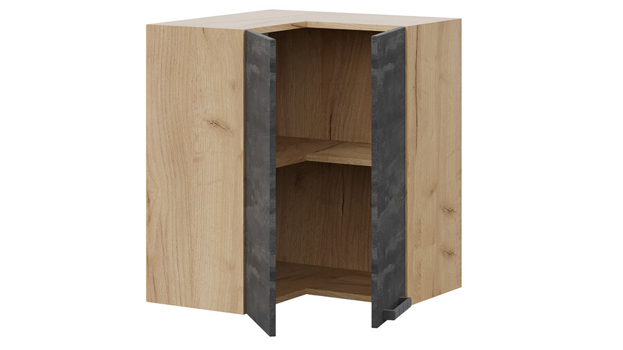 Шкаф навесной угловой прямой «Детройт» - 1В6УП Дуб Крафт золотой, Угольный Камень
