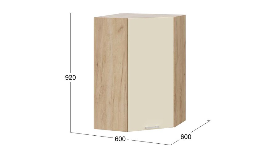 Шкаф навесной угловой «Габриэлла» - 1ВВ6У Дуб Крафт золотой, Крем