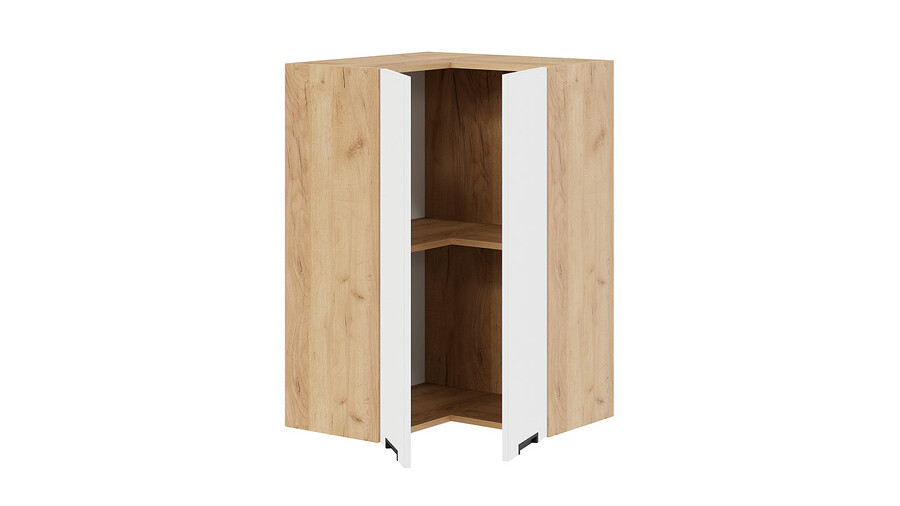 Шкаф навесной угловой прямой «Гренада» - 1ВВ6УП Дуб Крафт золотой, Холст Белый