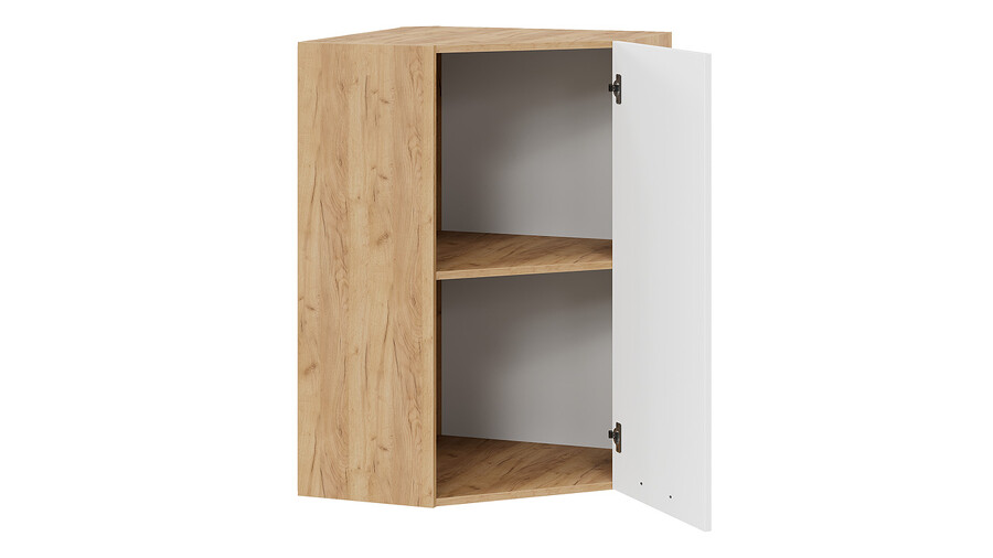 Шкаф навесной угловой «Тиана» - 1ВВ6У Дуб Крафт золотой, Белый супермат