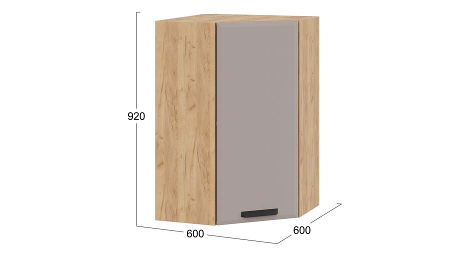 Шкаф навесной угловой «Тиана» - 1ВВ6У Дуб Крафт золотой, Мокко супермат
