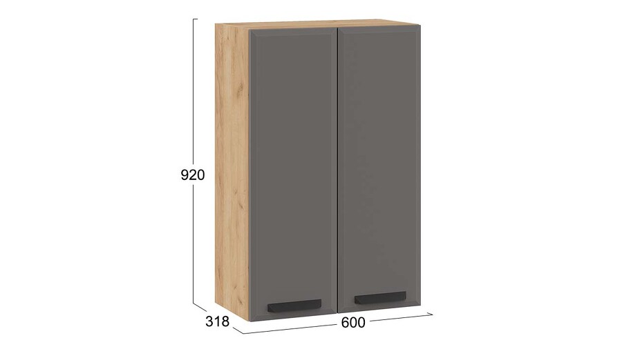 Шкаф навесной c двумя дверями «Тиана» - 1ВВ6 Дуб Крафт золотой, Асфальт супермат