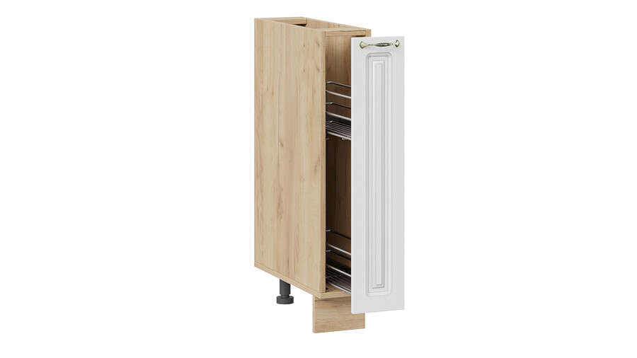 Шкаф напольный с выдвижной корзиной «Бьянка» - 1Н15К Дуб Крафт золотой, Дуб белый