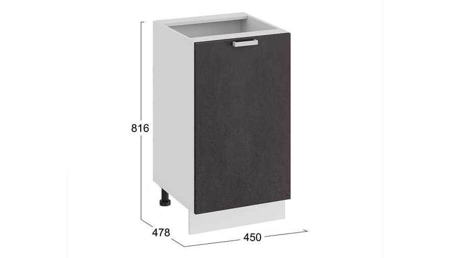 Шкаф напольный с одной дверью «Гранита» - 1Н45 Белый, Бетон графит