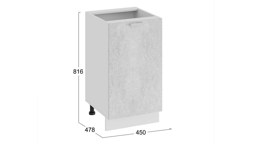 Шкаф напольный с одной дверью «Гранита» - 1Н45 Белый, Бетон снежный