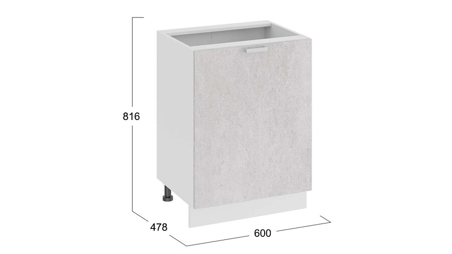 Шкаф напольный с одной дверью «Гранита» - 1Н6 Белый, Бетон снежный