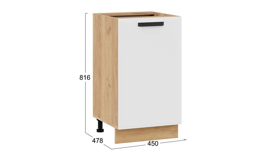 Шкаф напольный с одной дверью «Тиана» - 1Н45 Дуб Крафт золотой, Белый супермат