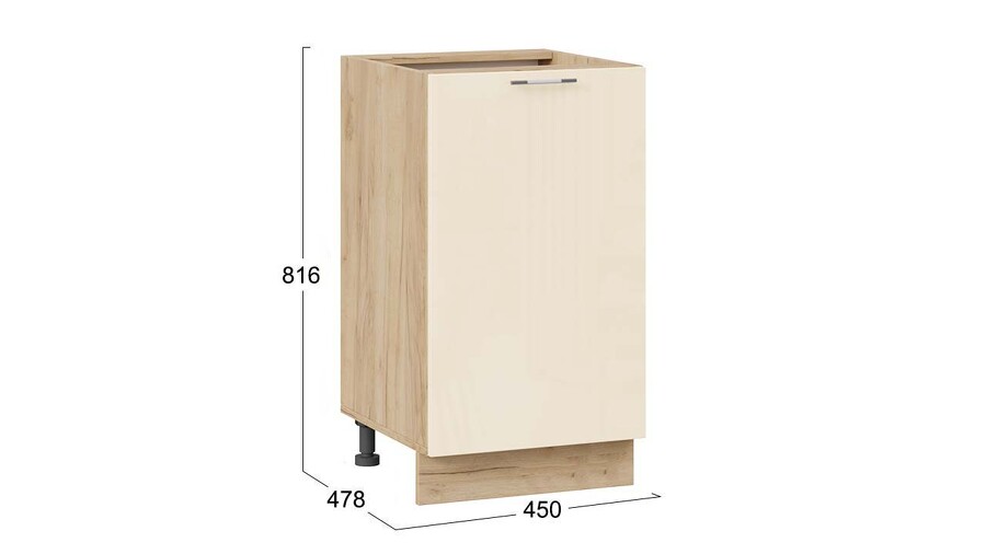 Шкаф напольный с одной дверью «Весна» - 1Н45 Дуб Крафт золотой, Ваниль глянец