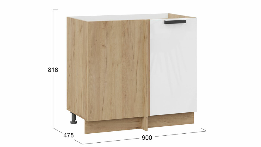 Шкаф напольный угловой «Детройт» исп. 2 - 1Н9У Дуб Крафт золотой, Белый глянец