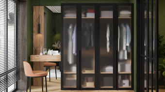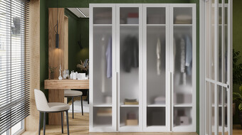 Шкаф для одежды с 2 глухими и 2 стеклянными дверями
