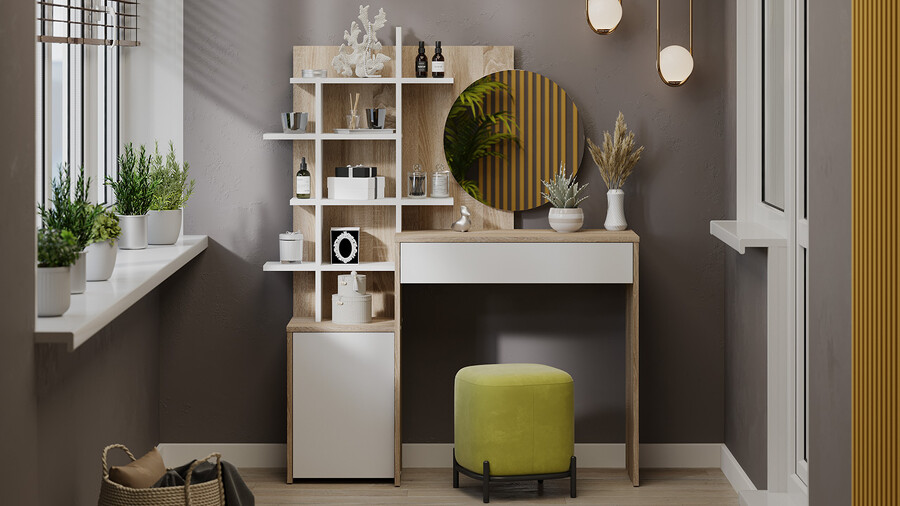 Стол туалетный «Голден» Дуб Сонома, Белый