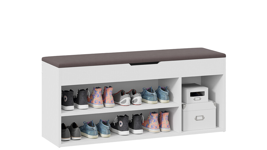 Тумба для обуви Тип 12 Белый Ясень, Велюр Серый