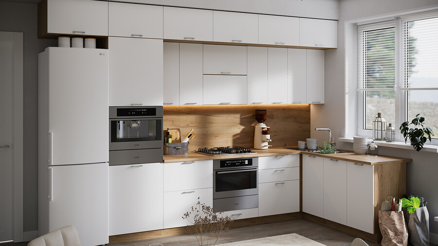 В стоимость не включено: Стеновая панель, столешница, доводчики, бытовая техника, мойка, смеситель, аксессуары