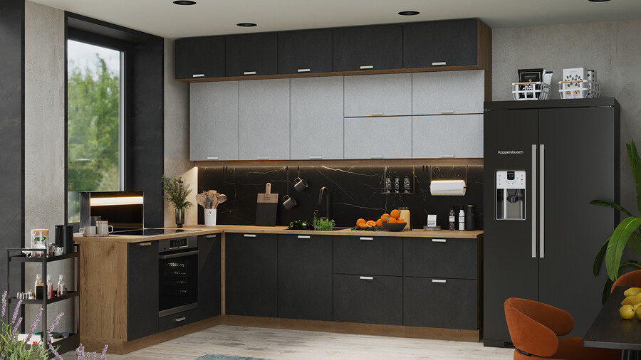 Кухонный гарнитур «Гранита» №4 Дуб Крафт золотой, Бетон снежный, Бетон графит
