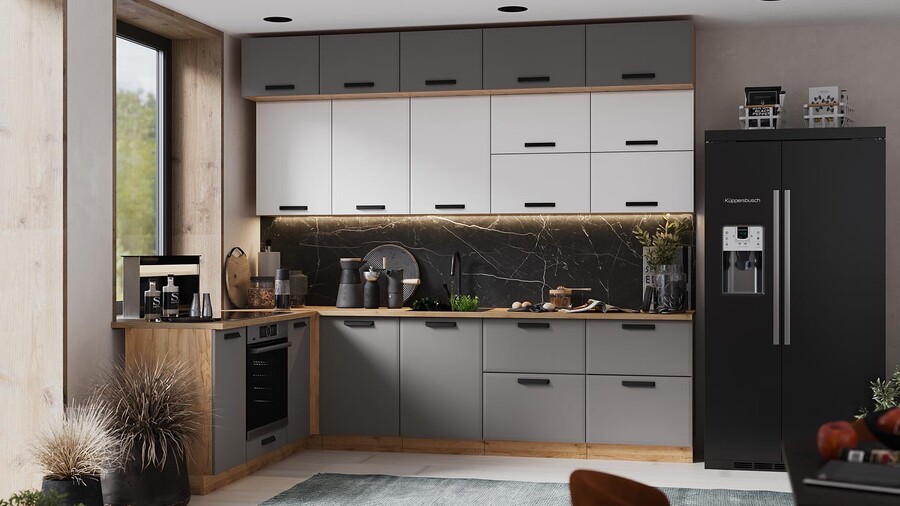 Кухонный гарнитур «Тиана» №8 Дуб Крафт золотой, Белый супермат, Асфальт супермат