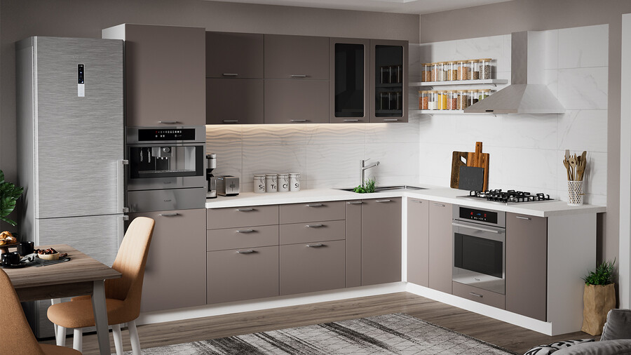 В стоимость не включено: Стеновая панель, столешница, доводчики, бытовая техника, мойка, смеситель, аксессуары