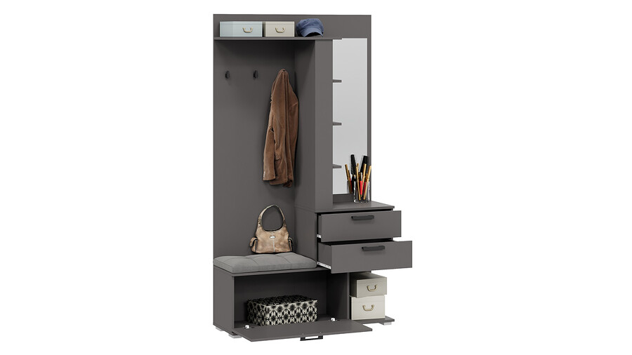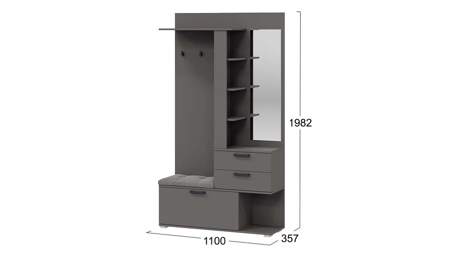 Вешалка комбинированная с крючками и зеркалом «Эрика» Тип 2 Графит Серый