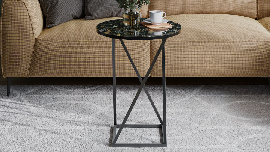 Стол журнальный ДП 1-03-05 исп. 2 - ДП 1-03-05 Черный, Стекло с рисунком Coffe