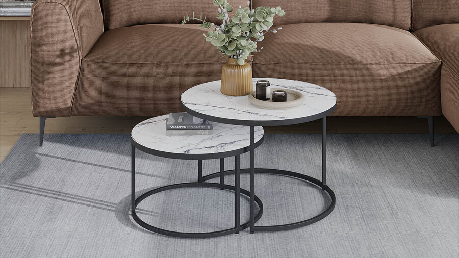 Стол журнальный «Вега» Черный, Стекло белый мрамор