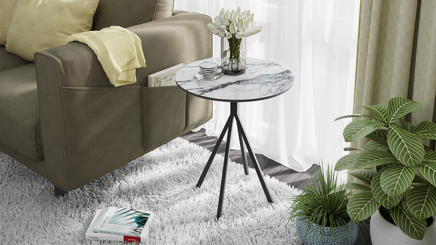 Стол журнальный ДП 1-04-14 - ДП 1-04-14 Черный, Стекло Мрамор белый