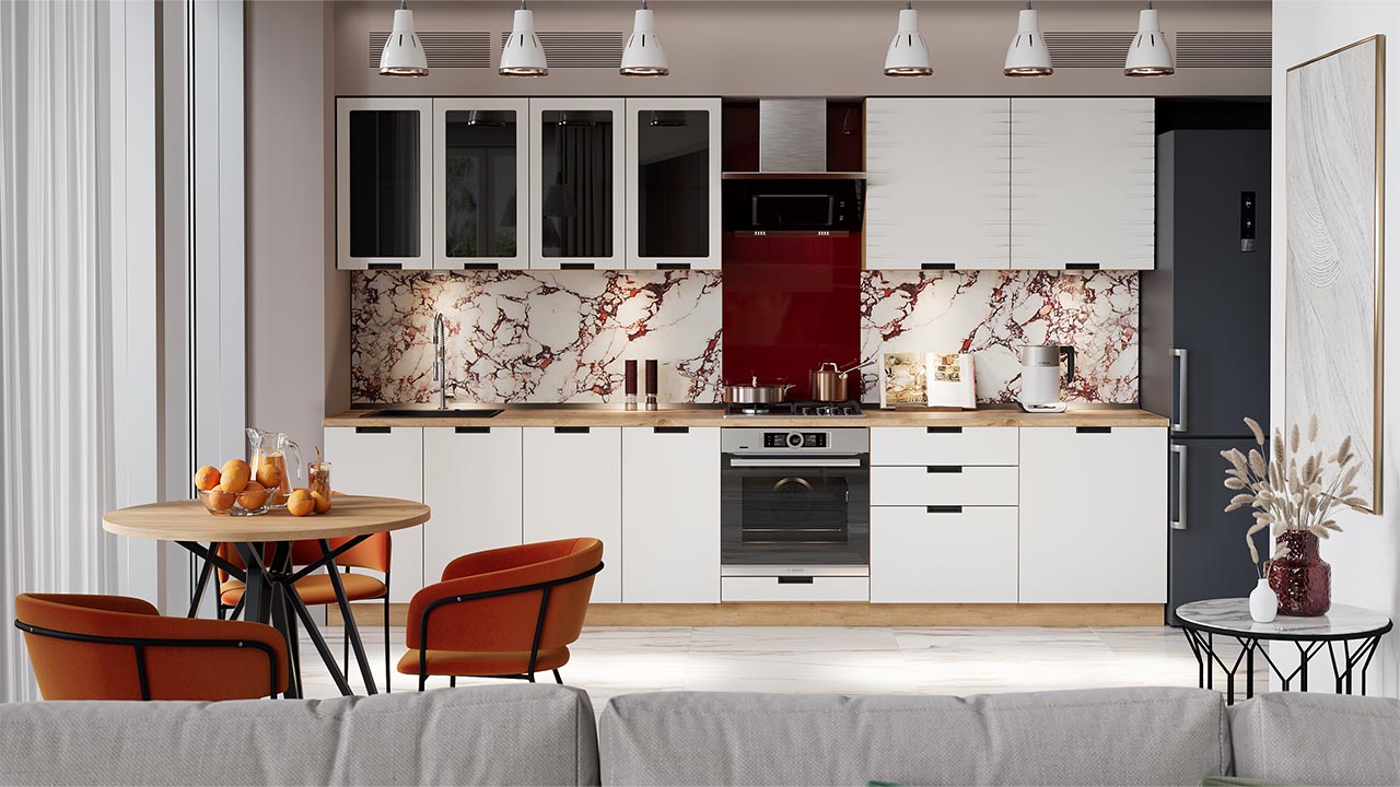 «Гренада» - кухня, имеющая свой неповторимый характер, которую хочется рассматривать и любоваться ее необычным исполнением. Она создана для поклонников современного дизайна благодаря технологичной врезной ручке и трендовой ПВХ-пленке. Гармонично подобранные сочетания текстурных оттенков создают широчайшую палитру идеальных вариаций и акцентов на Вашей кухне.
