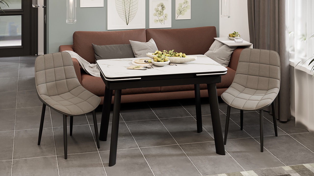 Стол «Джойс» Тип 1 - это гармоничное сочетание лаконичного дизайна, высокой эргономики и современного стиля. Его изящная керамогранитная столешница с плавными, закругленными краями придает интерьеру элегантность и утонченность. Устойчивое основание, продуманный механизм раздвижения и компактные габаритные размеры делают его не только стильным, но и практичным решением для любого пространства.
