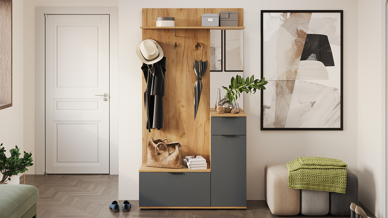 Секция комбинированная Эвита Тип 1 - Идеальный вариант обустройства небольшой прихожей для тех, кто предпочитает максимальную функциональность и эстетичность мебели.