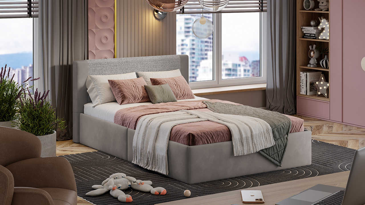 Декор. Особое очарование модели придает сочетание двух видов микровелюра. Ткань из коллекции Linea Grande — настоящий символ утонченности: её выразительный объем подчеркивает мягкость изголовья. В дуэте с бархатистой фактурой коллекции Connect она превращает каждое прикосновение в наслаждение. Эти износостойкие и нежные материалы идеально подходят для детской, создавая атмосферу обволакивающего уюта.