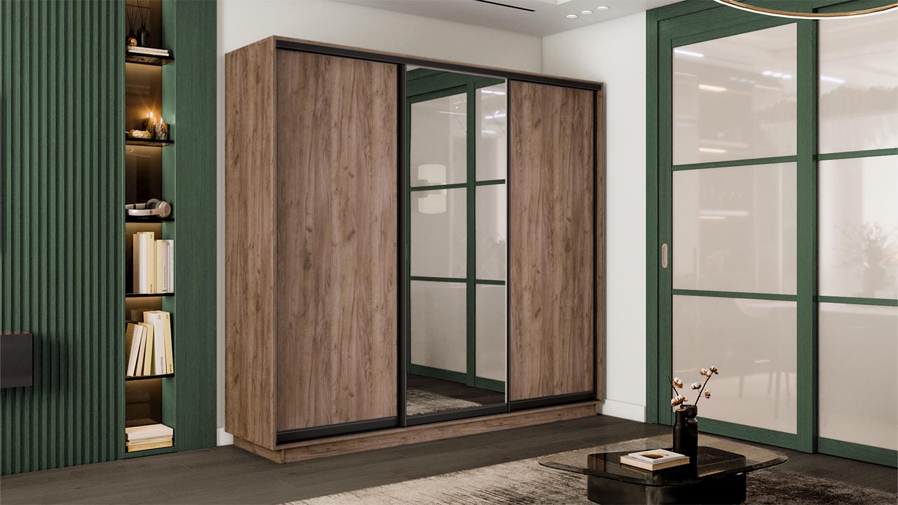 Дизайн. Модель предлагает множество вариантов оформления, предоставляя широкие возможности для реализации различных идей. Для каркаса шкафа доступны разнообразные фасады из ЛДСП и зеркала, благодаря чему вы сможете создать идеальное сочетание, отражающее стиль вашего интерьера. Особенностью этой модели является возможность использования черного профиля, который придаст шкафу неповторимый облик. Это современное дизайнерское решение подчеркивает актуальные тенденции в оформлении помещений и помогает создать стильный и модный образ. Шкаф с черным профилем станет выразительным элементом вашего дома.