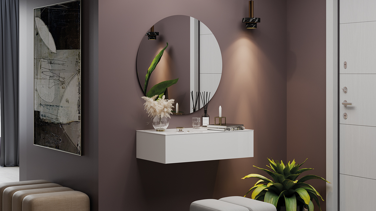 Наполнение и фурнитура. Помимо привлекательного внешнего вида, стол туалетный «Глосс» дополнен вместительным выдвижным ящиком, открывание которого происходит с помощью захвата снизу, а направляющие скрытого монтажа обеспечат плавный и бесшумный ход..